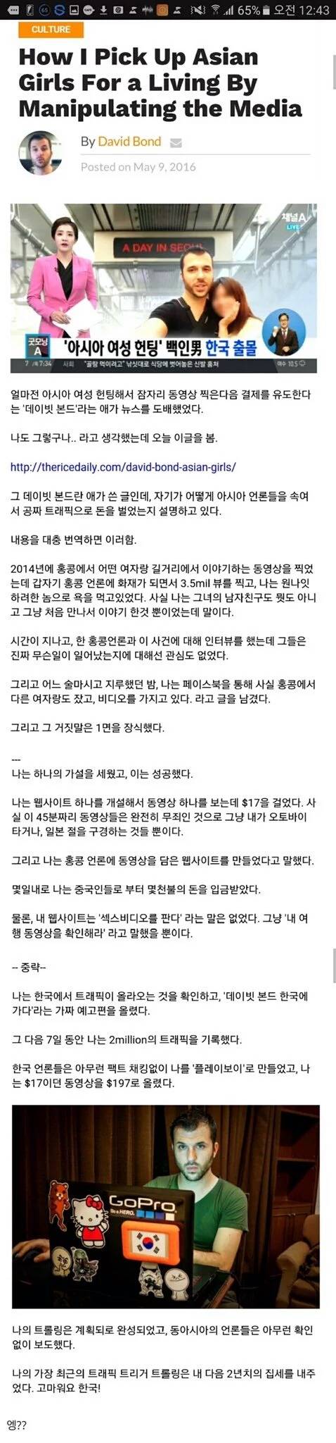 썸녀의 정체를 알게되고 멘붕온 남자 …