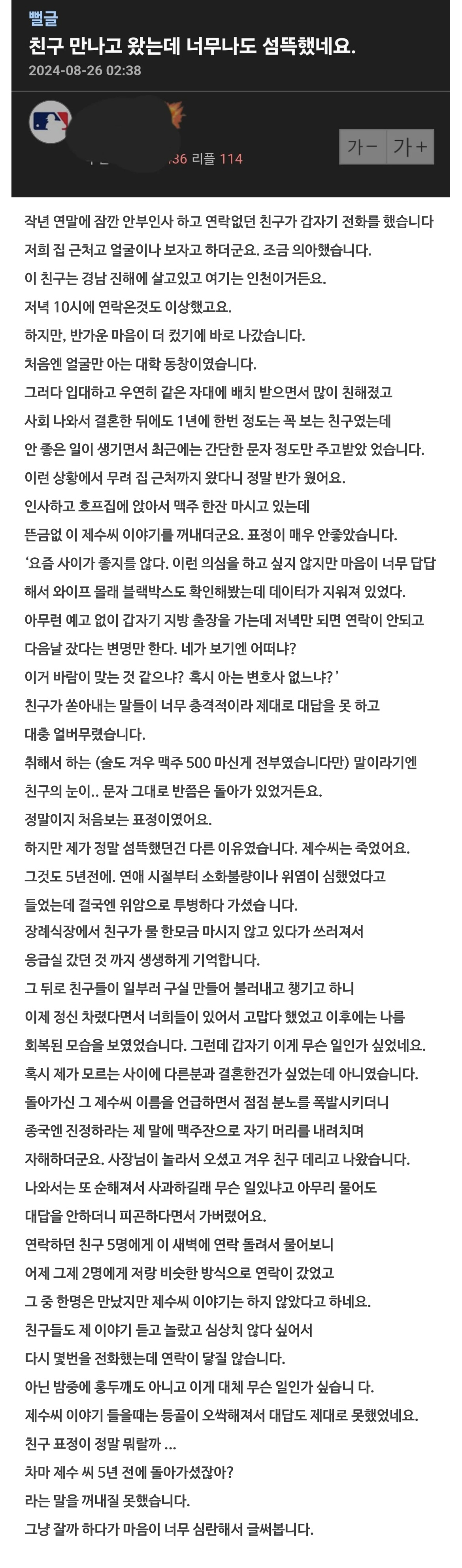 친구를 만나고 왔는데 너무 섬뜩합니다