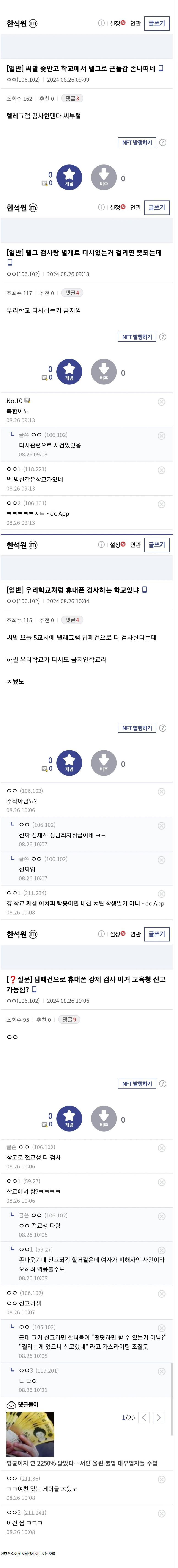 텔레그램 사건때문에 폰검사한다는 고등학교