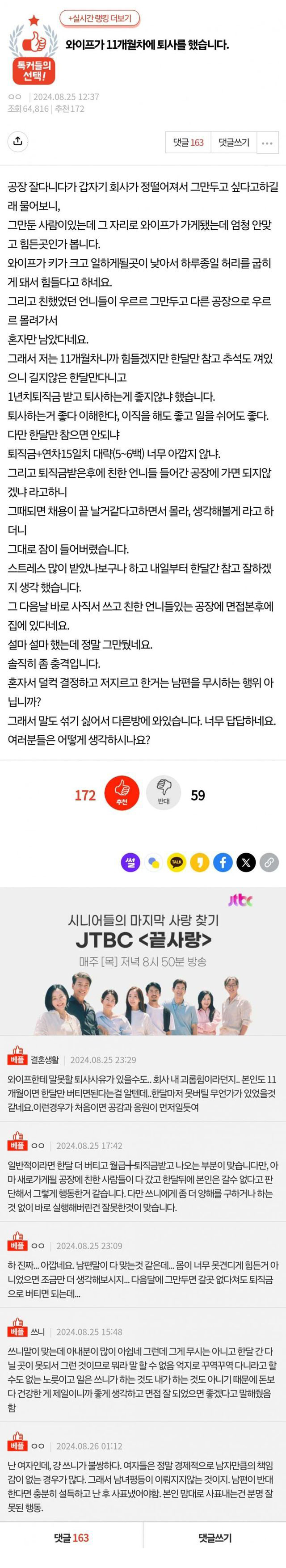 와이프가 11개월차에 퇴사를 했습니다