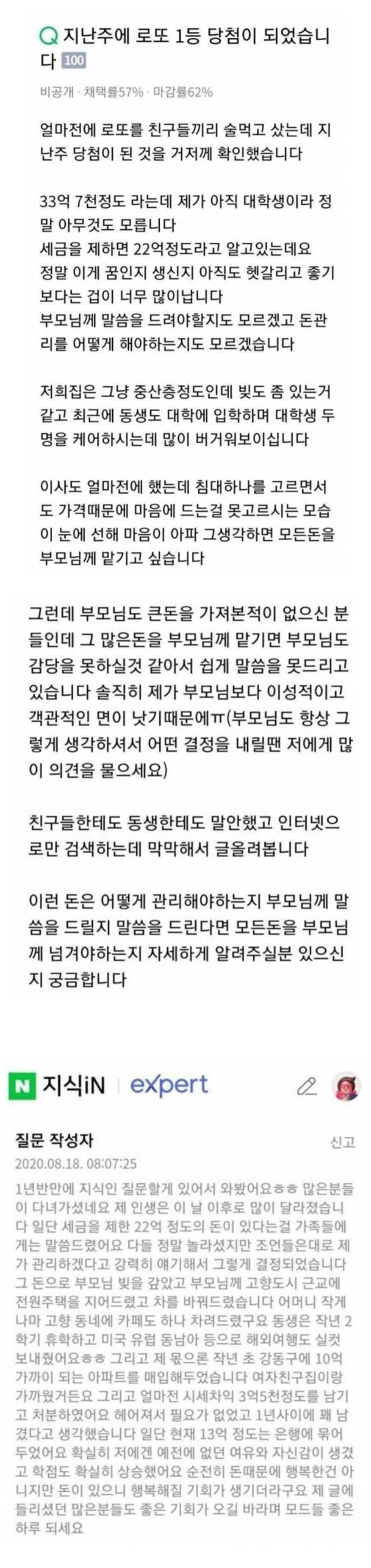로또 1등 22억 수령한 대학생+후기