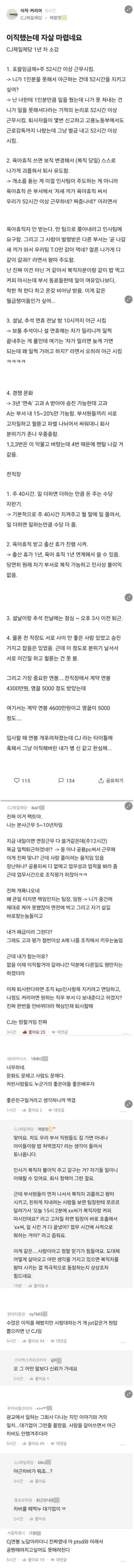 CJ제일제당 육아휴직자의 폭로ㄷㄷㄷ;;;