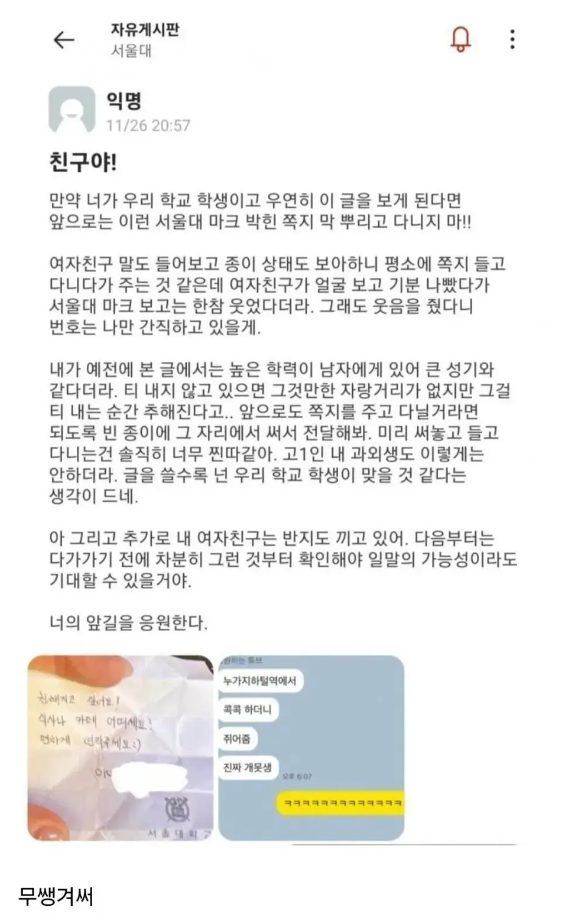 지하철역에서 헌팅 시도한 서울대학생