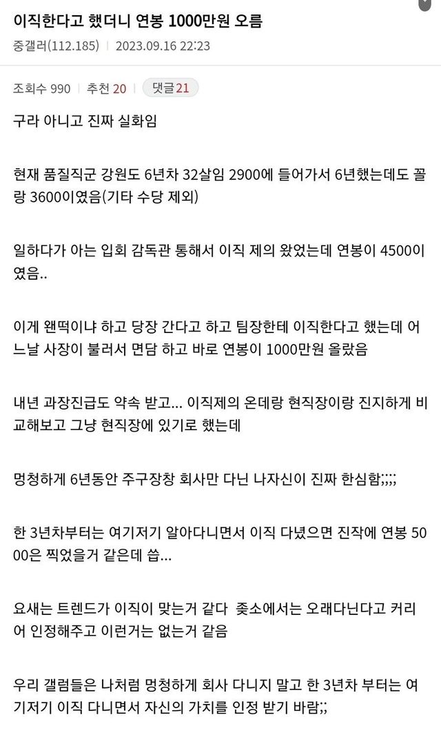 이직한다고 했더니 연봉 1000만원 오름ㄷㄷㄷ;;