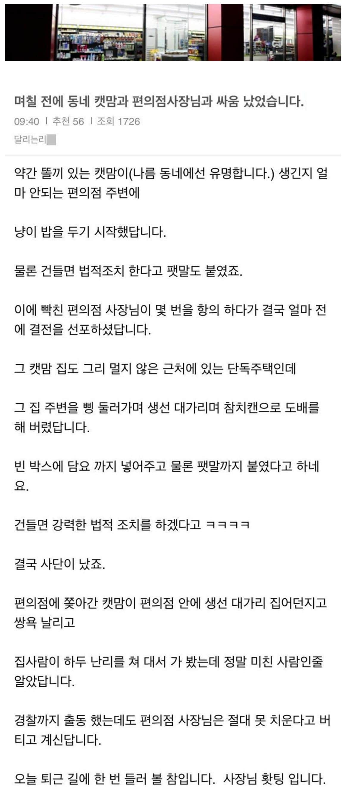 캣맘과 편의점 사장님의 전쟁