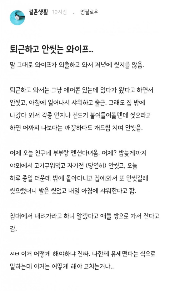 퇴근하고 안 씻는 와이프ㄷㄷㄷ;;;