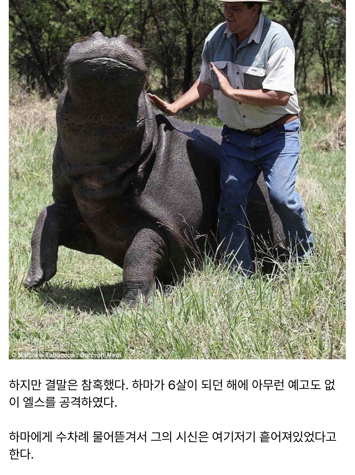 하마를 반려동물로 키우던 남자의 최후ㄷㄷㄷ;;
