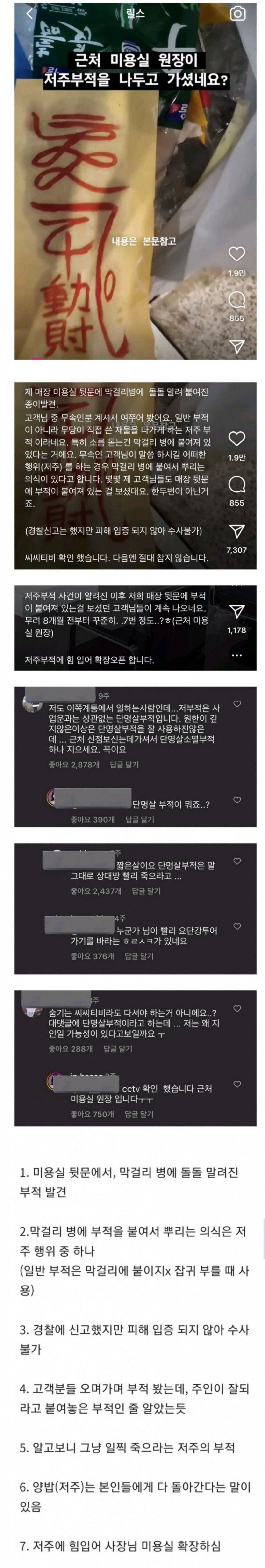 미용실에 붙은 저주 부적의 진실 ㄷㄷㄷ;;