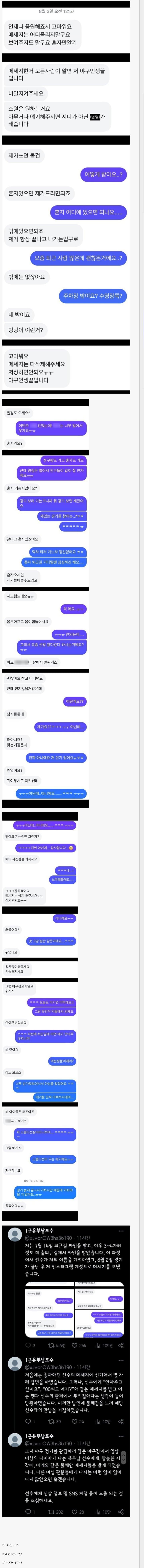 오늘자 프로야구 1군 유부남 포수 폭로글