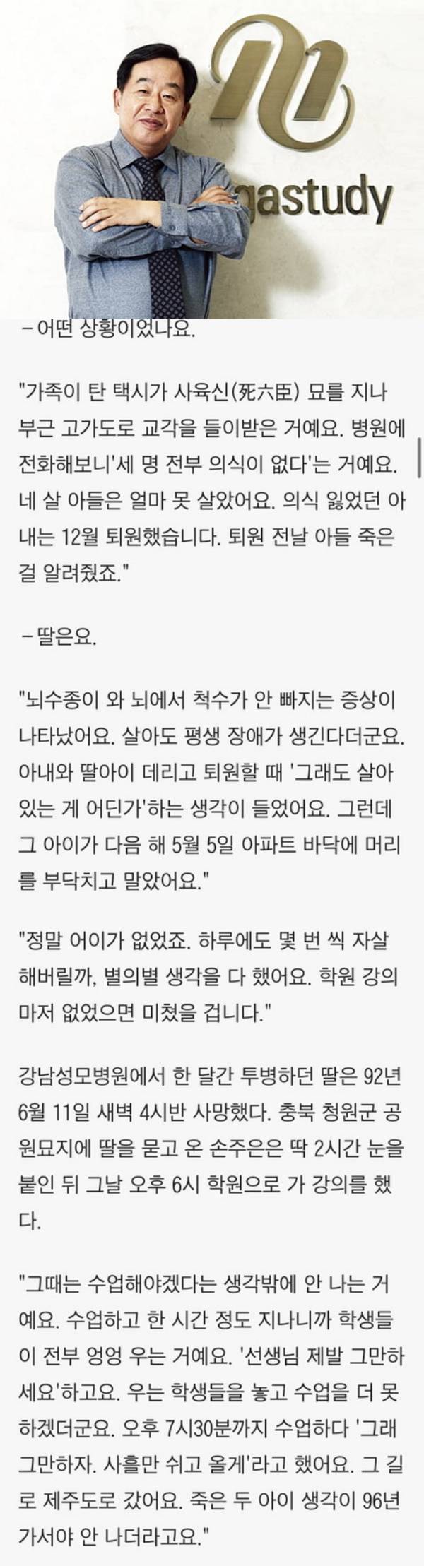 메가스터디 손주은 회장이 겪었던 불행한 사고ㄷㄷㄷ