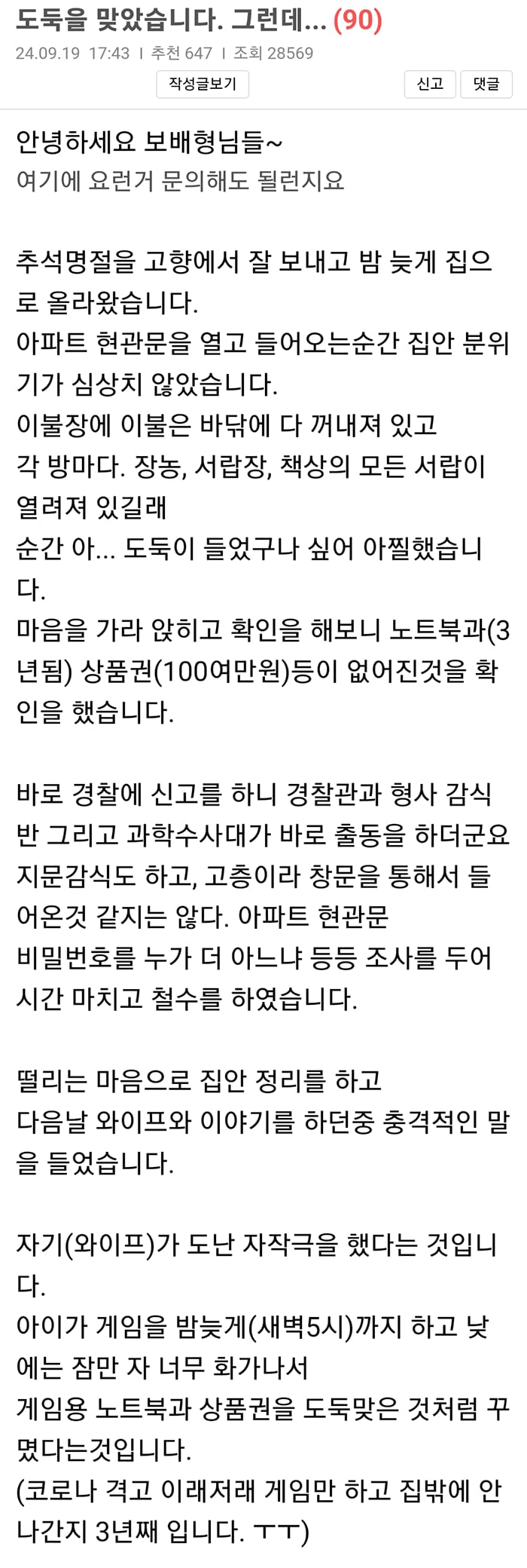 도둑을 맞았습니다. 그런데…,,,,