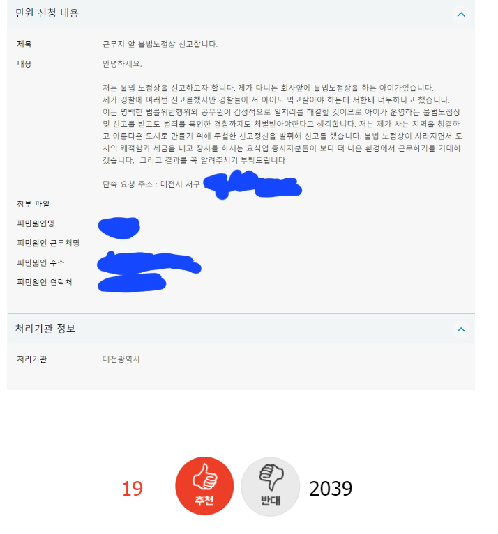 불법 노점상 신고했는데 회사에서 왕따당합니다.