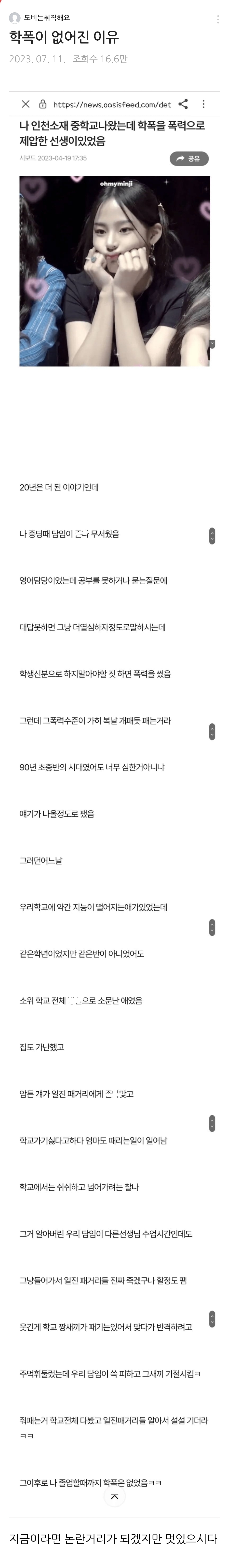 학폭이 없어진 이유(폭력은 더 큰 폭력으로)