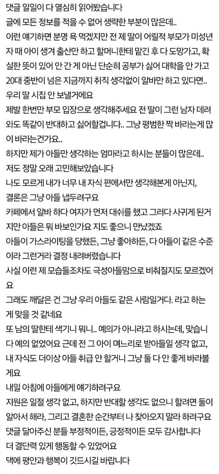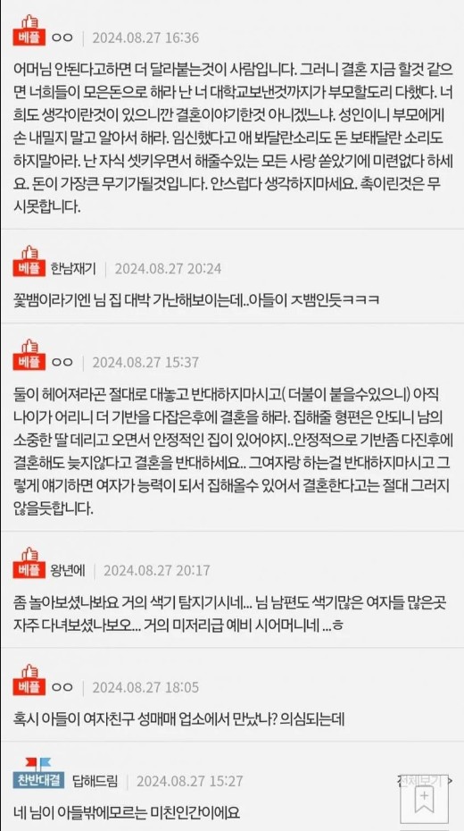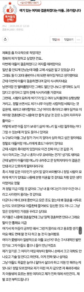 색기있는 여자와 결혼하겠다는 아들