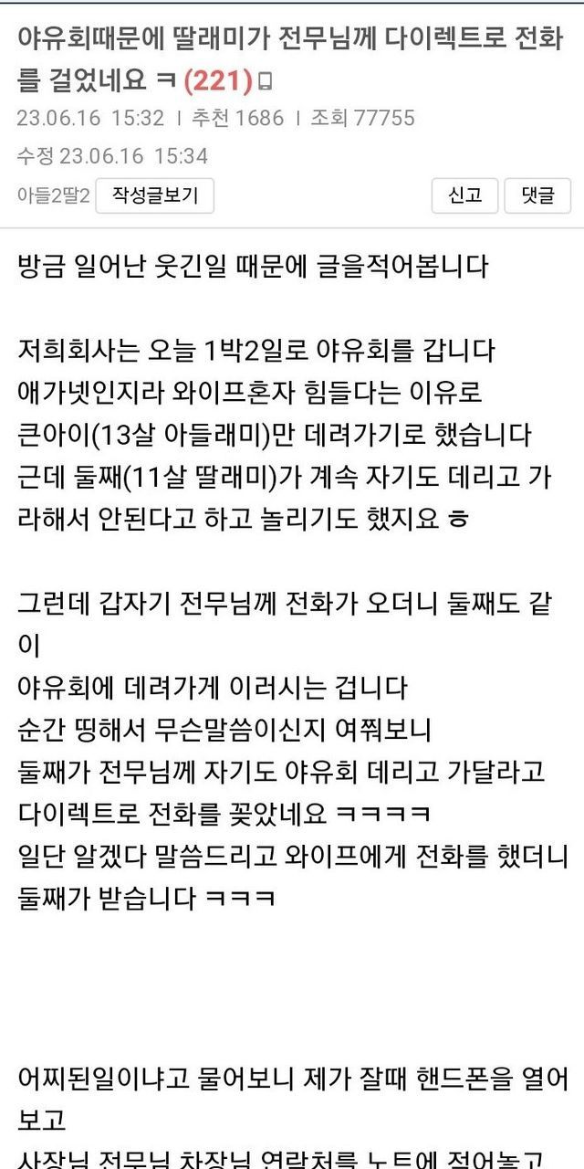 딸이 다이렉트로 전무님께 전화드렸네요