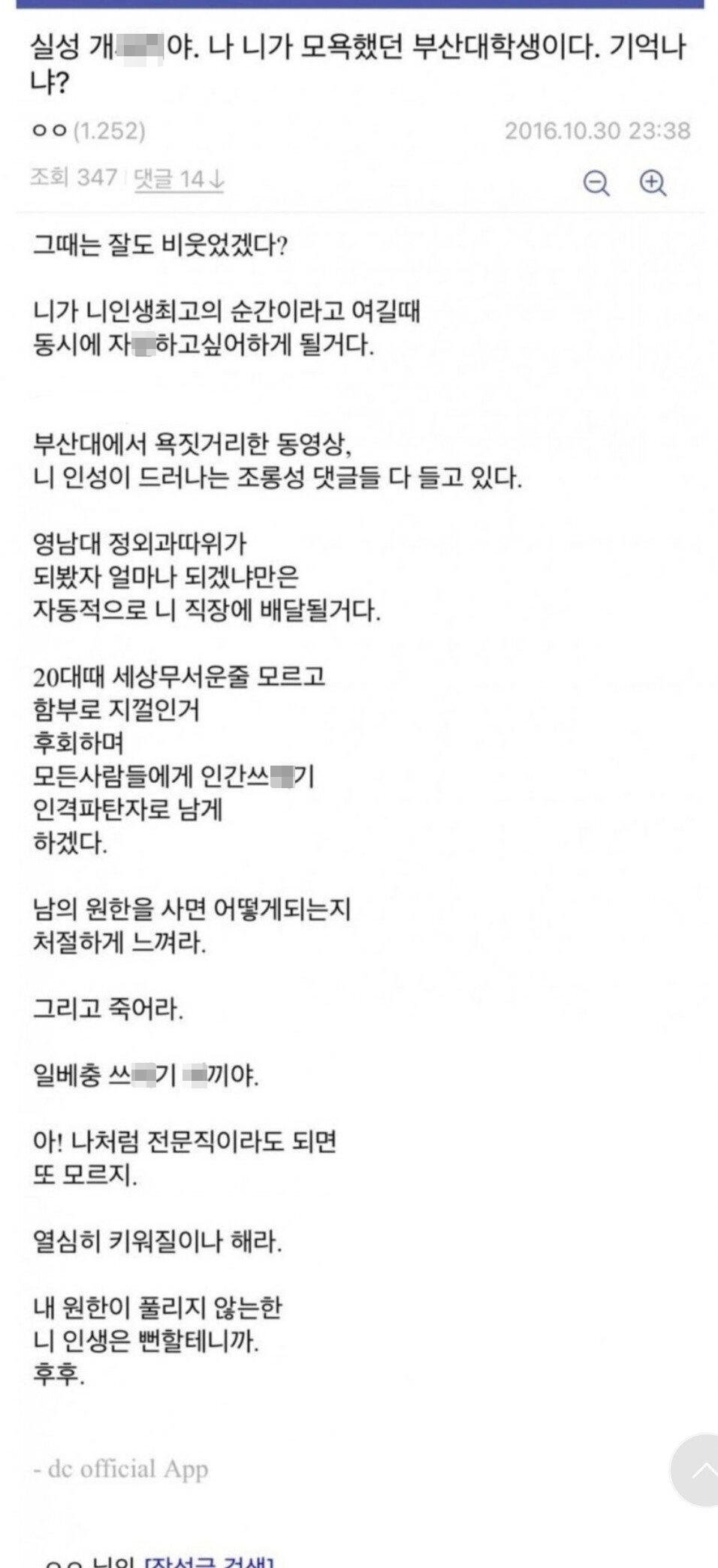 가해자가 취직하면 복수할 거라던 피해자ㅋㅋㅋㅋ