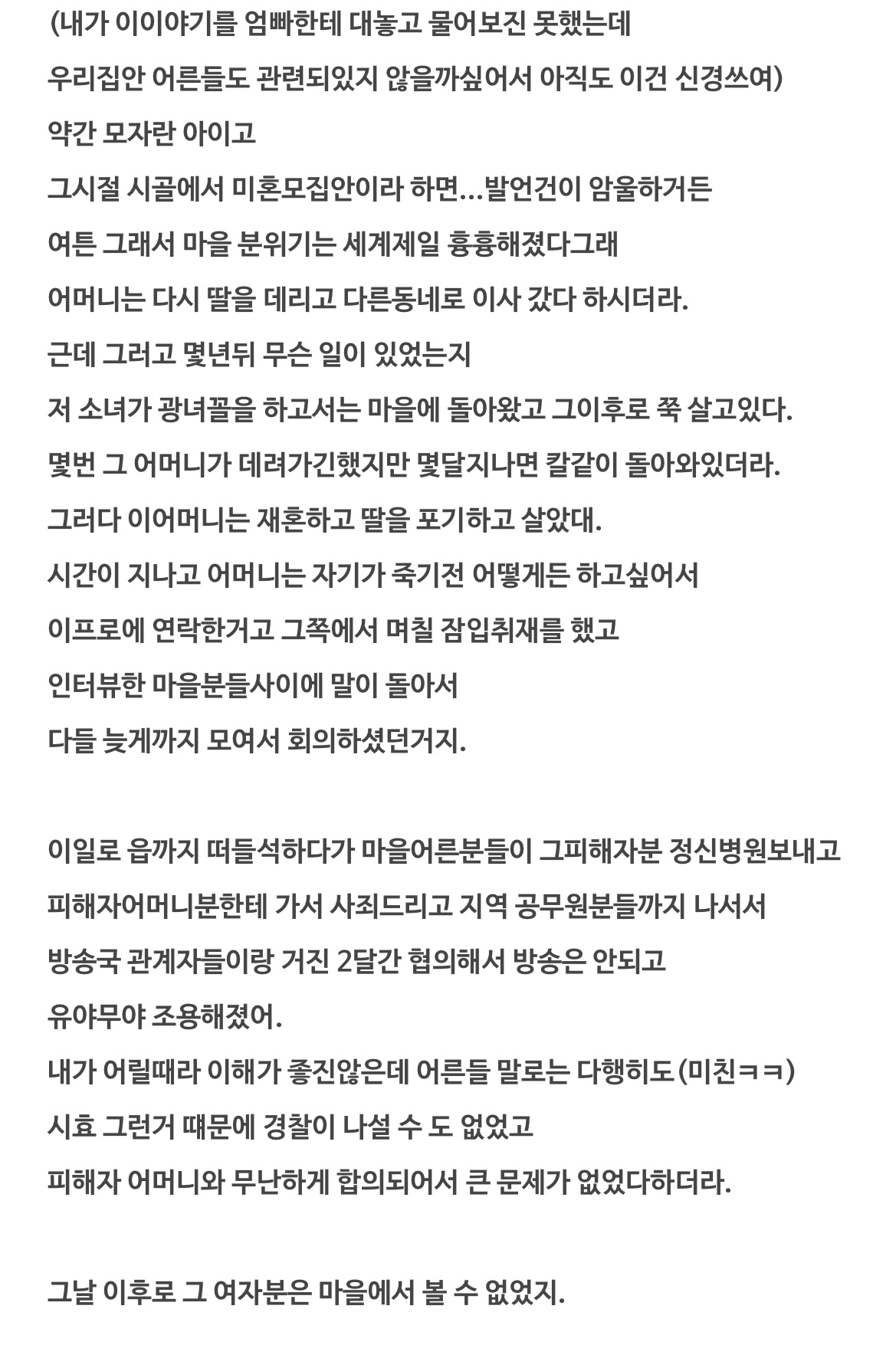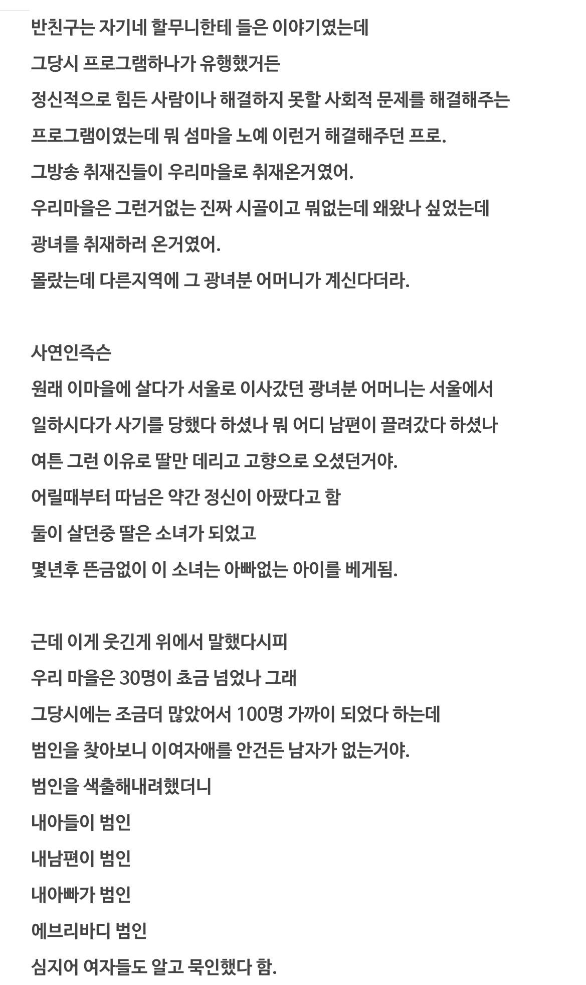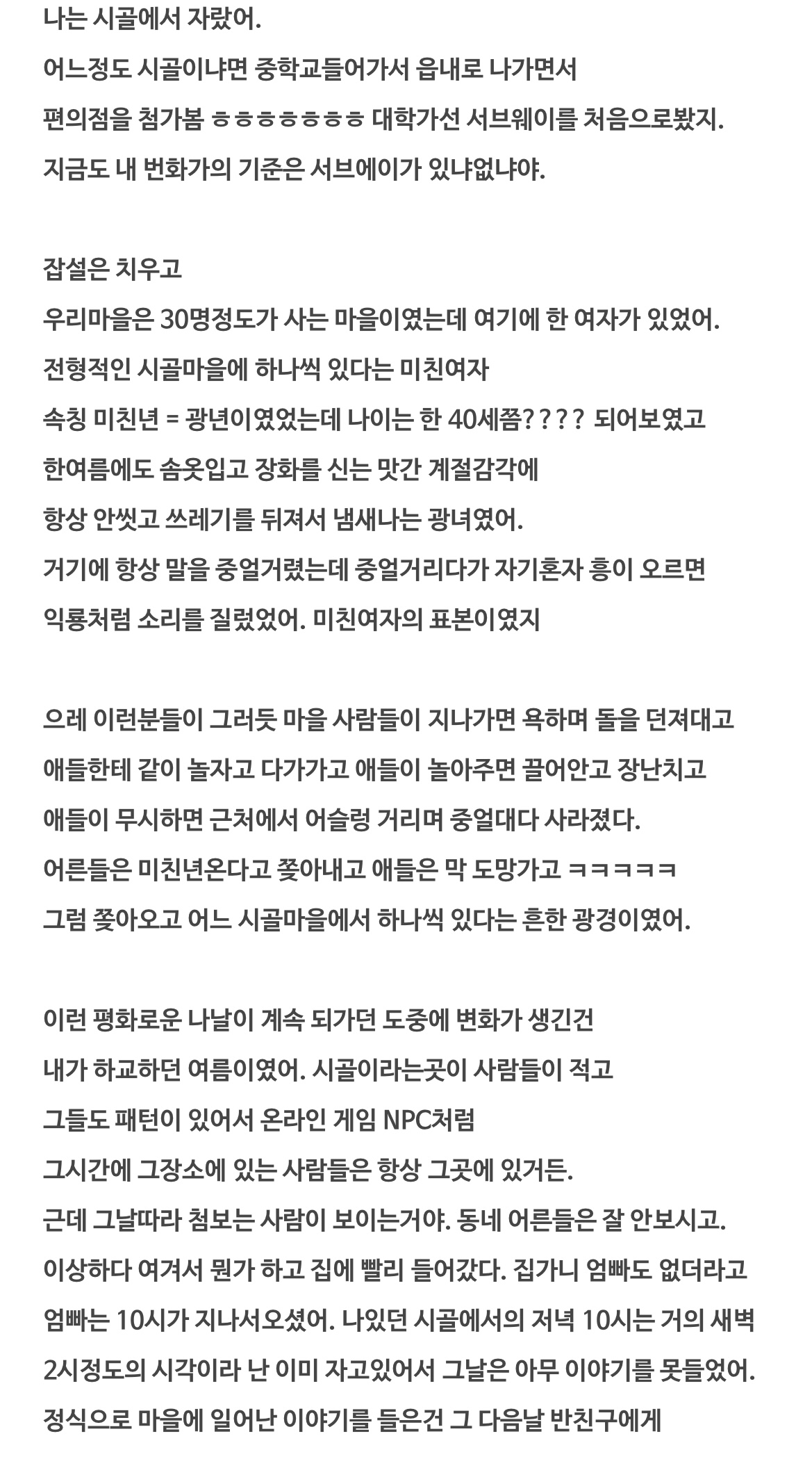 예전 시골에 하나씩 있었다는 미친 여자의 사연.....