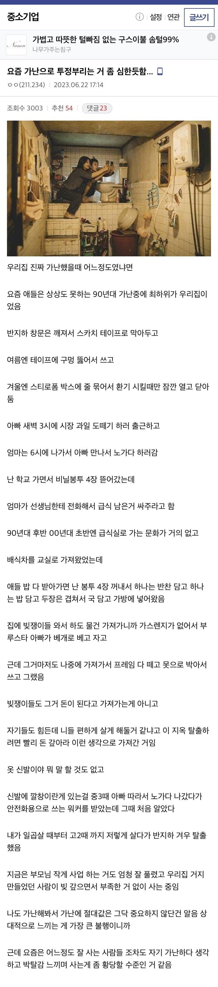 요즘 가난으로 투정 부리는 거 심한듯함...