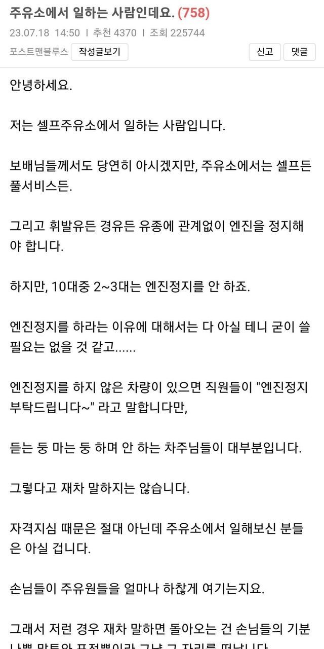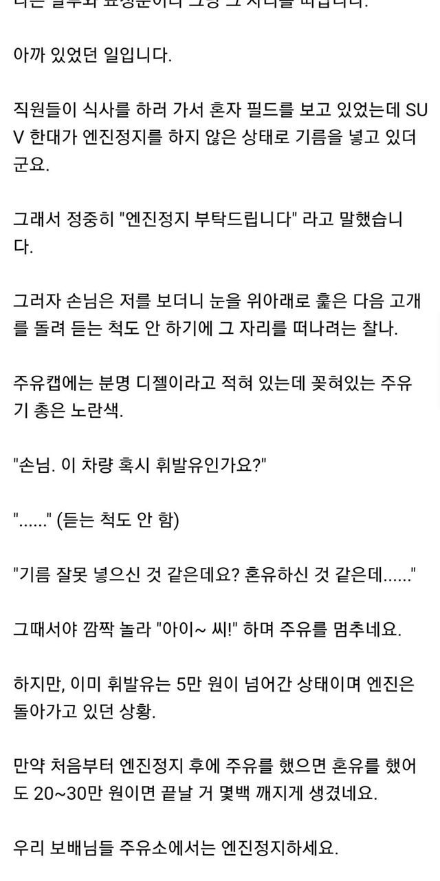 주유 할 때 시동을 꺼야하는 이유